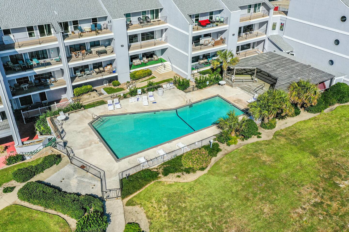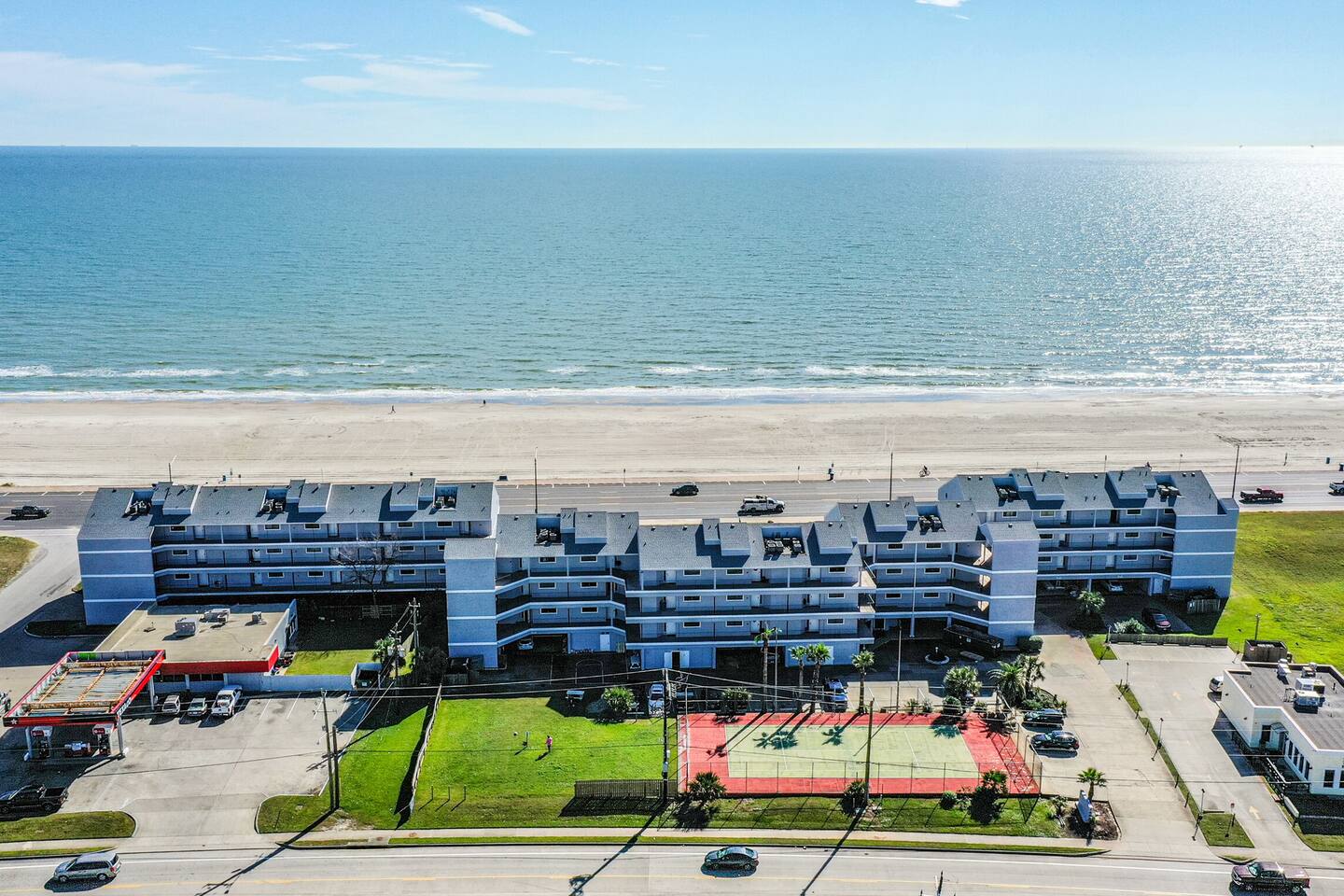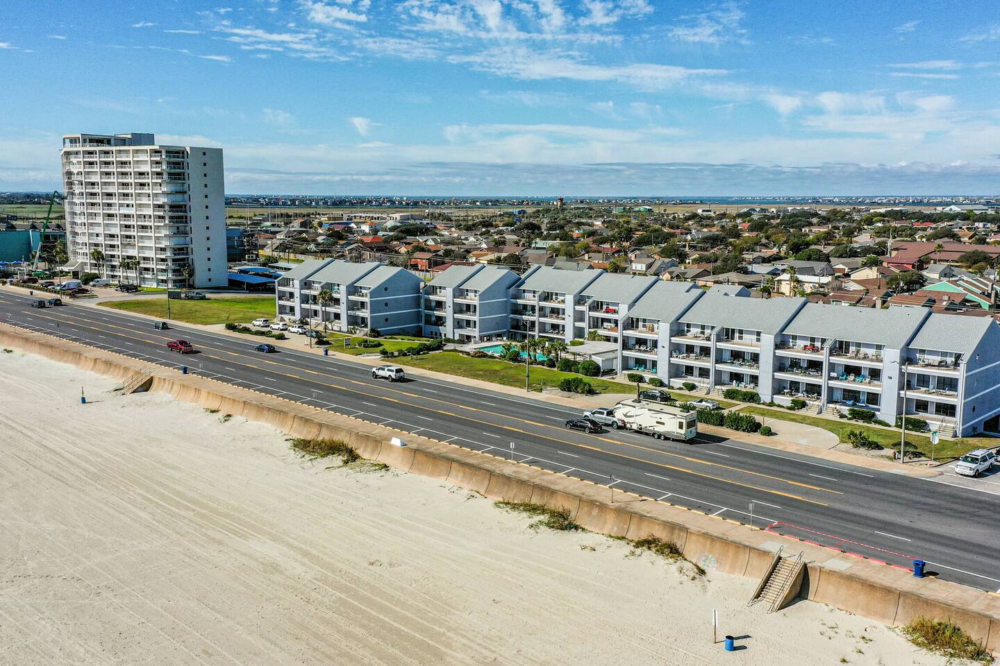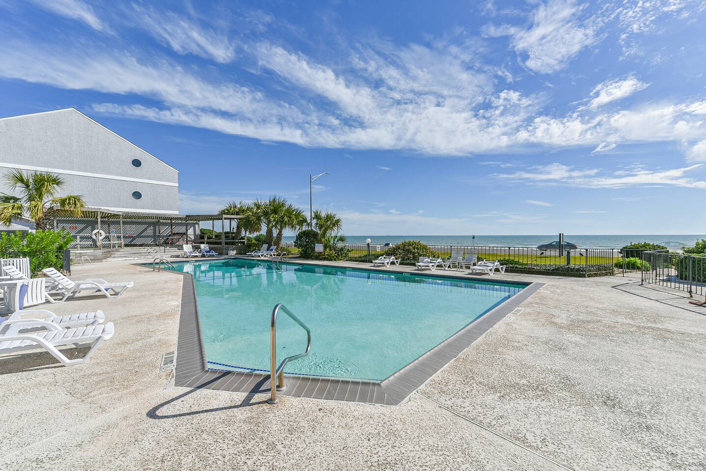 ~BEACH VIEW! ~Only 50 steps to the beach ~Beachside pool and hot tub ~Only 5-minute drive to Moody Gardens ~Morning coffee with ocean view ~Gym on-site with free access ~Walking distance to fine dining